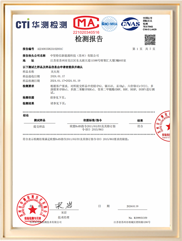 中堅特信新能源科技(蘇州)有限公司是由蘇州科技大學材料學院的技術骨干和天鼎源創公司以及中堅新能源合伙企業發起成立的,致力于新能源汽車和儲能電站的阻燃防護,以技術進步最大程度的保證生命和財產安全。公司聯合蘇州科技大學材料學院唐院士團隊和天鼎源創公司重大創新團隊進行新材料的開發,創造出耐1000℃及以上的耐高溫隔熱阻燃非金屬柔性材料,2A級生態滅火劑,A1級納米陶瓷復合隔熱板以及高燃值火災防控隔斷,在新能源火災防護領域用途廣闊。